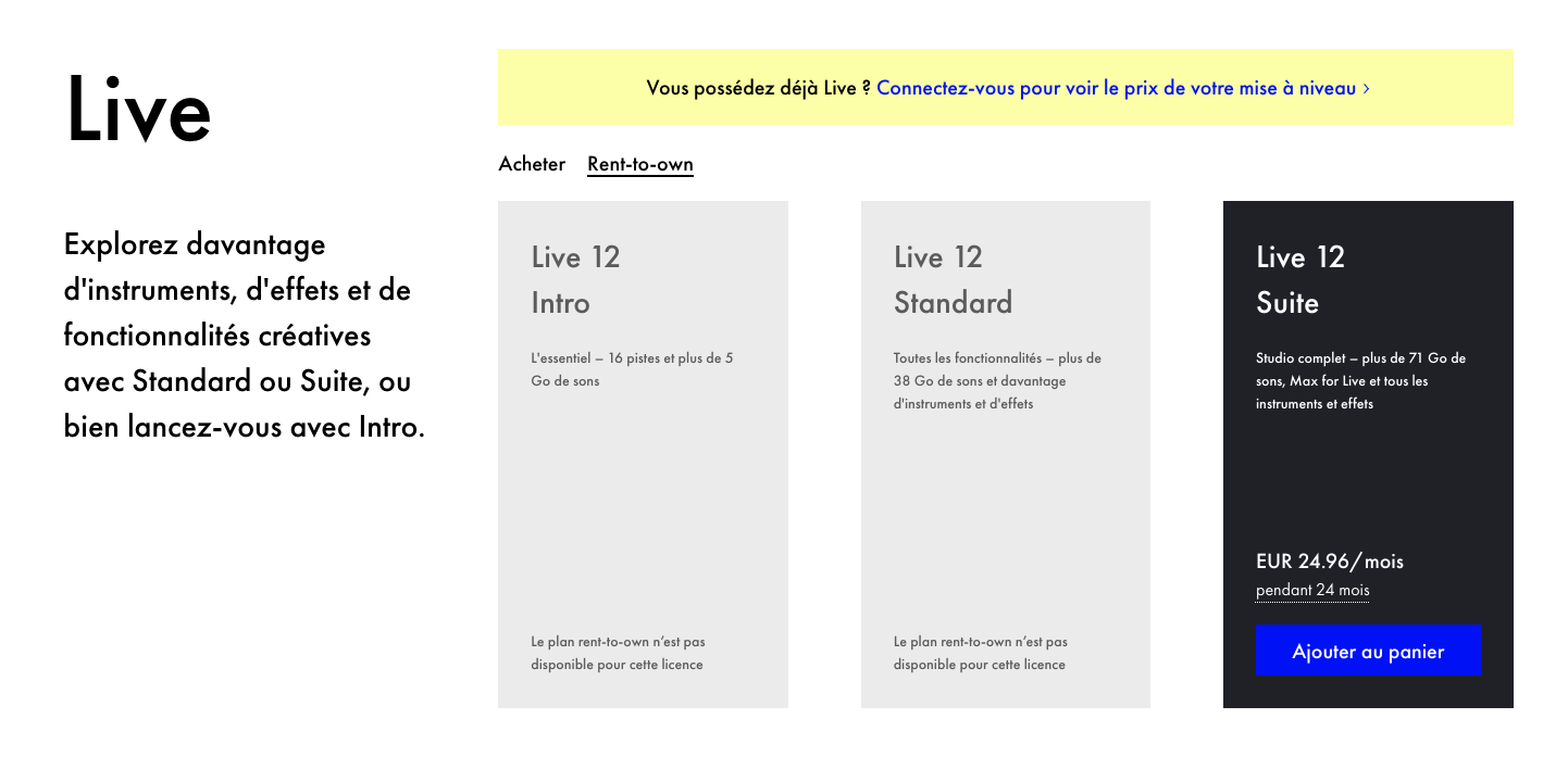 Vous pouvez désormais acheter Ableton Live 12 Suite en rent-to-own directement sur la boutique Ableton.